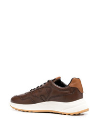 H383 low-top sneakers Brown calf leather/canvas H383 low-top sneakers from HOGAN featuring embroidered logo to the side, logo patch at the tongue, front lace-up fastening, round toe and ridged rubber sole. Made in Italy Composition Outer: Calf Leather 100% Lining: Calf Leather 100%, Fabric 100% Sole: Rubber 100% SIZE & FIT Measurement Sole height 0.98 in(2.5 cm) HEEL 1.57 in(4 cm) FittingInformation This piece fits large – take one size down