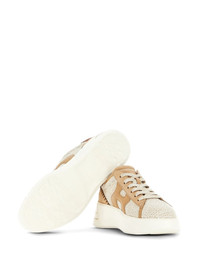 H564 low-top sneakers Highlights - White/brown/light beige - Suede - Panelled design - Woven raffia design - Logo patch to the side - Signature h logo - Logo-debossed tongue - Round toe - Front lace-up fastening - Branded insole - Gold-tone - Chunky sole Made in Italy Composition Suede 100% SIZE & FIT Measurement HEEL 1.96 in(5 cm)
