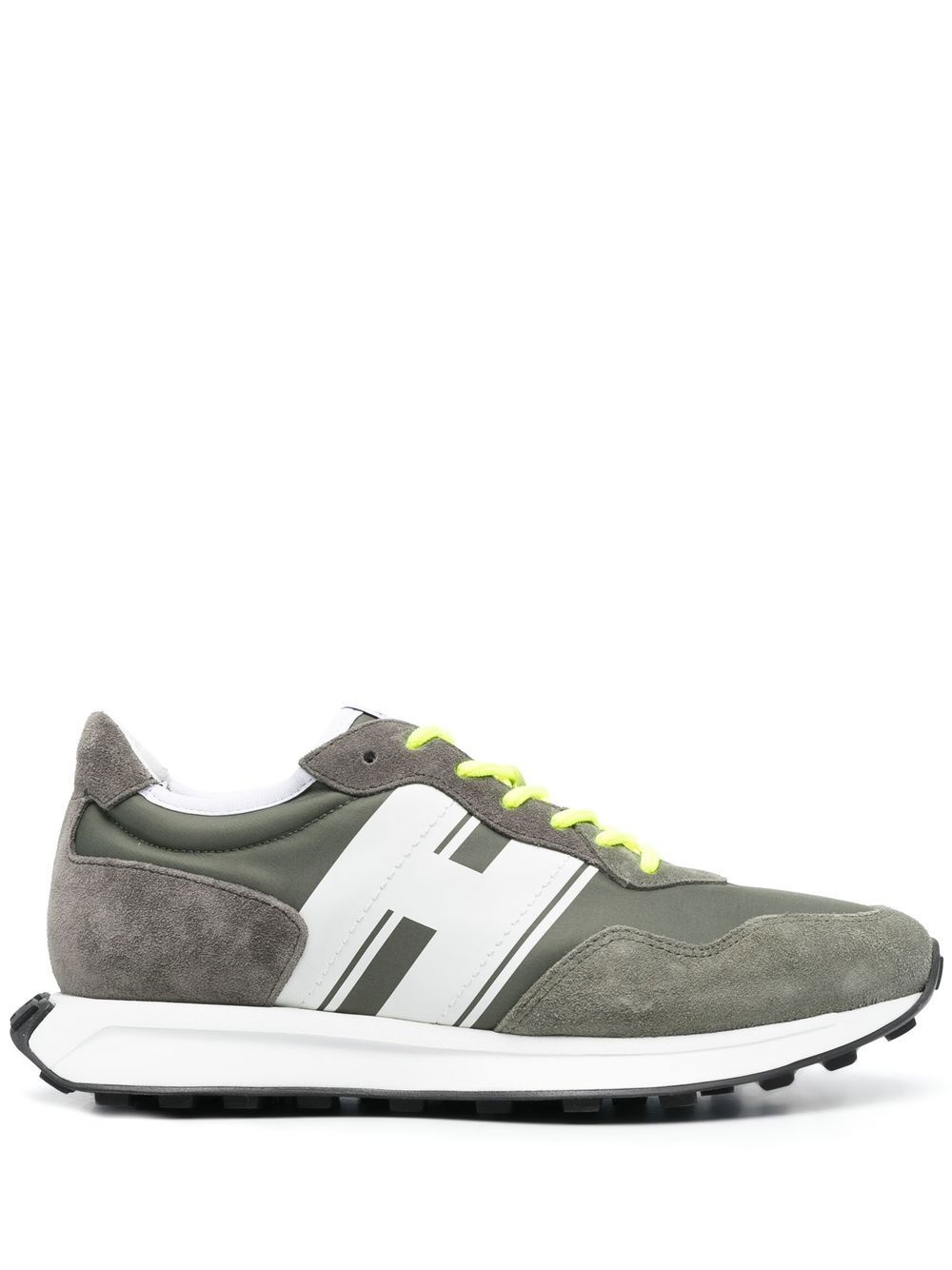 H601 low-top sneakers khaki/white/fluorescent yellow calf suede/calf leather logo print to the side logo patch at the tongue panelled design round toe front lace-up fastening contrasting laces branded insole flat rubber sole Made in Italy Composition Outer: Calf Leather 100%, Calf Suede 100%, Fabric 100% Sole: Rubber 100% Lining: Fabric 100% SIZE & FIT Measurement HEEL 1.18 in(3 cm) Sole height 0.39 in(1 cm)