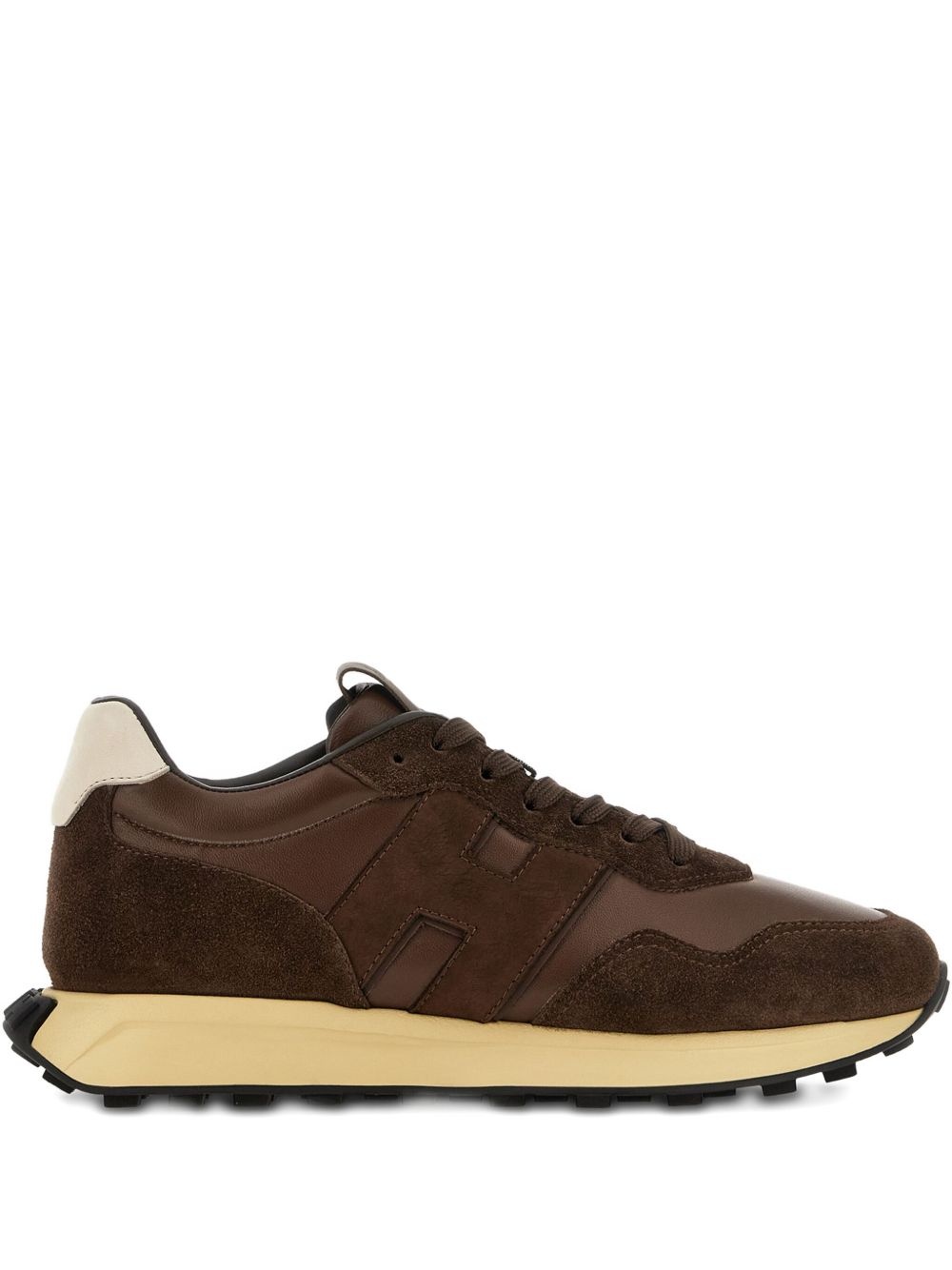 H601 sneakers Highlights - Coffee brown - Front lace-up fastening - Contrasting rubber sole - Pull-tab at the heel - Applique logo Made in Italy Composition Sole: Rubber 100% Lining: Calf Leather 100% Outer: Sheepskin 55%, Calf Suede 45%