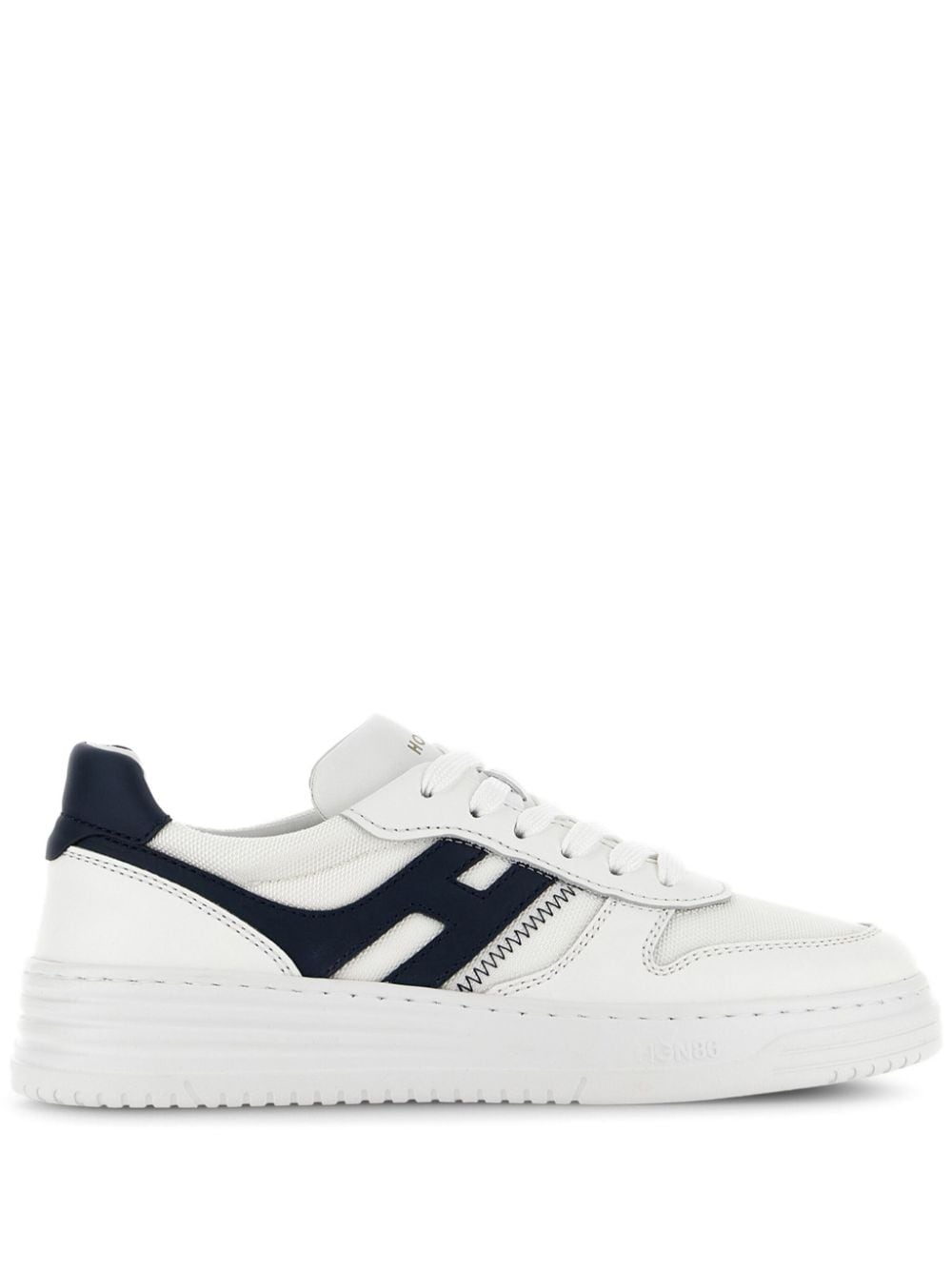 H630 panelled sneakers Highlights - White/midnight blue - Canvas/leather - Colour-block panelled design - Contrast stitching - Logo-print tongue - Round toe - Front lace-up fastening - Contrasting branded heel counter - Branded insole - Flat rubber sole Made in Italy Composition Outer: Polyamide 100%, Leather 100% Lining: Fabric 100% Sole: Rubber 100% SIZE & FIT Measurement HEEL 1.37 in(3.5 cm) Sole height 0.98 in(2.5 cm)