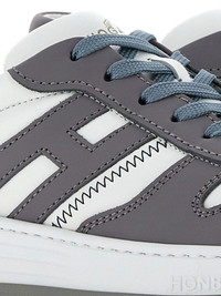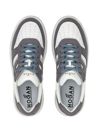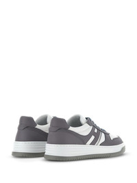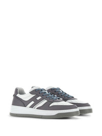 H630 perforated low-top sneakers Highlights - Dark grey/white - Calf leather - Panelled design - Logo patch to the side - Logo-print tongue - Perforated detailing - Round toe - Front lace-up fastening - Flat rubber sole Made in Italy Composition Lining: Leather 100% Sole: Rubber 100% Outer: Nappa Leather 100% SIZE & FIT Measurement HEEL 1.77 in(4.5 cm) WIDTH 12.4 in(31.5 cm)