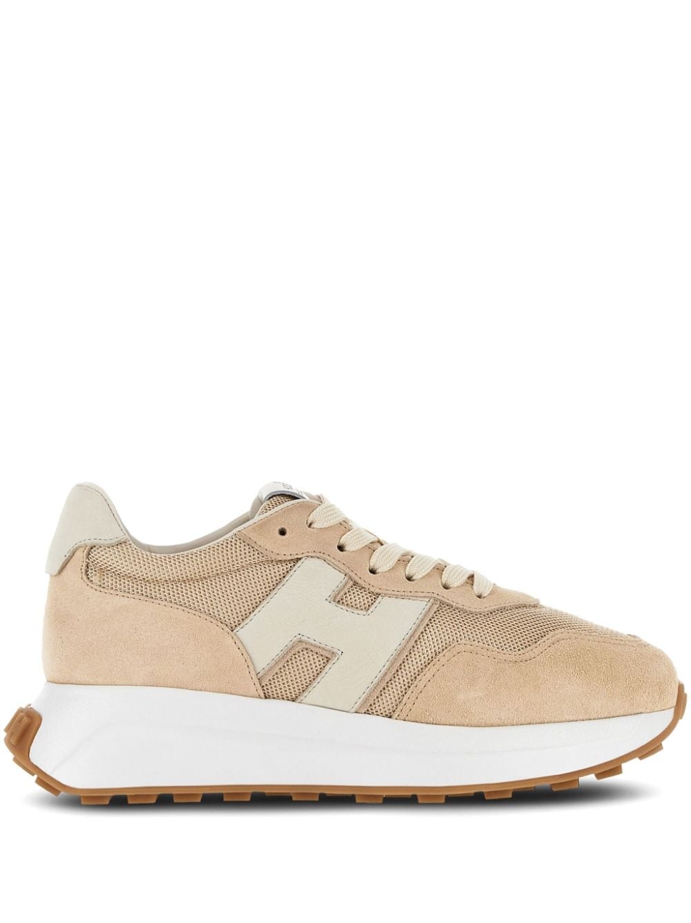H641 panelled lace-up sneakers Highlights - Beige - Panelled design - Suede panelling - Mesh panelling - Logo patch to the side - Logo patch at the tongue - Contrasting heel counter - Almond toe - Front lace-up fastening - Branded insole - Flat rubber sole Made in Italy Composition Leather 100%