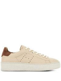 H672 lace-up leather sneakers Highlights - Beige - Calf leather - Panelled design - Logo-debossed tongue - Perforated detailing - Contrasting branded heel counter - Round toe - Front lace-up fastening - Branded insole - Flat rubber sole Made in Italy Composition Leather 100%