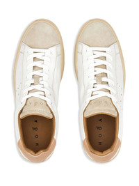 H672 lace-up leather sneakers Highlights - White/beige - Calf leather - Panelled design - Suede panels - Perforated detailing - Logo-debossed tongue - Contrasting heel counter - Round toe - Front lace-up fastening - Branded insole - Flat rubber sole Made in Italy Composition Leather 100%