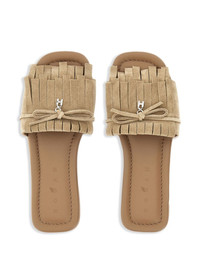 H685 sandals Highlights - Sand beige - Branded leather insole - Rubber sole - Logo charm - Fringe detail at the toe Made in Italy Composition Lining: Calf Leather 100% Sole: Rubber 100% Outer: Calf Suede 100%