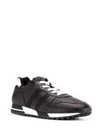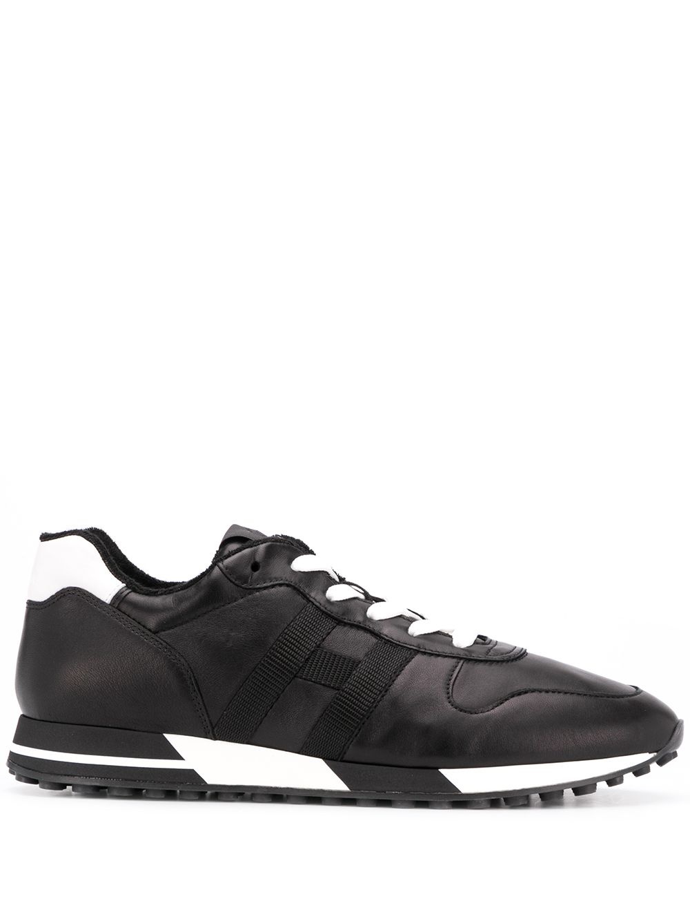 H838 low-top sneakers Black leather H838 low-top trainers from Hogan featuring stitched panels, a logo to the outside, a contrasting heel counter, a brand embossed tongue, a lace fastening, a round toe and a ridged rubber sole. Made in Italy Composition Outer: Calf Leather 100% Lining: Calf Leather 100%, Polyester 100% Sole: Rubber 100%