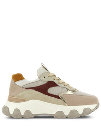 Hyperactive panelled low-top sneakers Boasting a panelled linen and suede design, Hogan's Hyperactive sneakers are rendered here in an earthy colour palette. They're grounded on a chunky sole that offers a statement look. Highlights - Beige - Linen - Suede - Panelled design - Logo patch at the tongue - Front lace-up fastening - Round toe - Chunky rubber sole Made in Italy Composition Outer: Linen/Flax 100%, Suede 100% Sole: Rubber 100% Lining: Fabric 100%