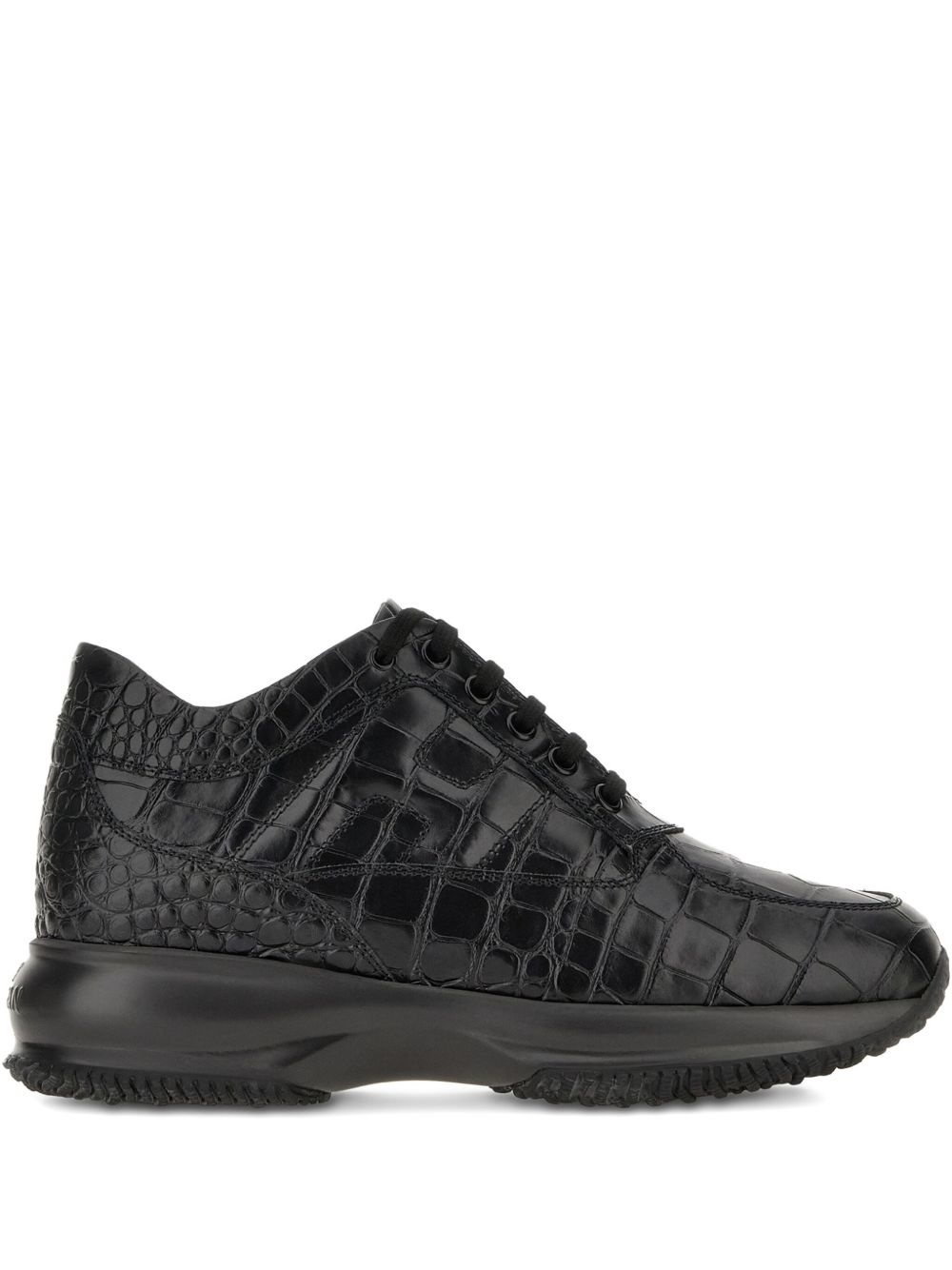 Interactive sneakers Highlights - Black - Front lace-up fastening - Rubber sole - Embossed crocodile effect Made in Italy Composition Outer: CALFSKIN 100% Lining: Fabric 100% Sole: Rubber 100%