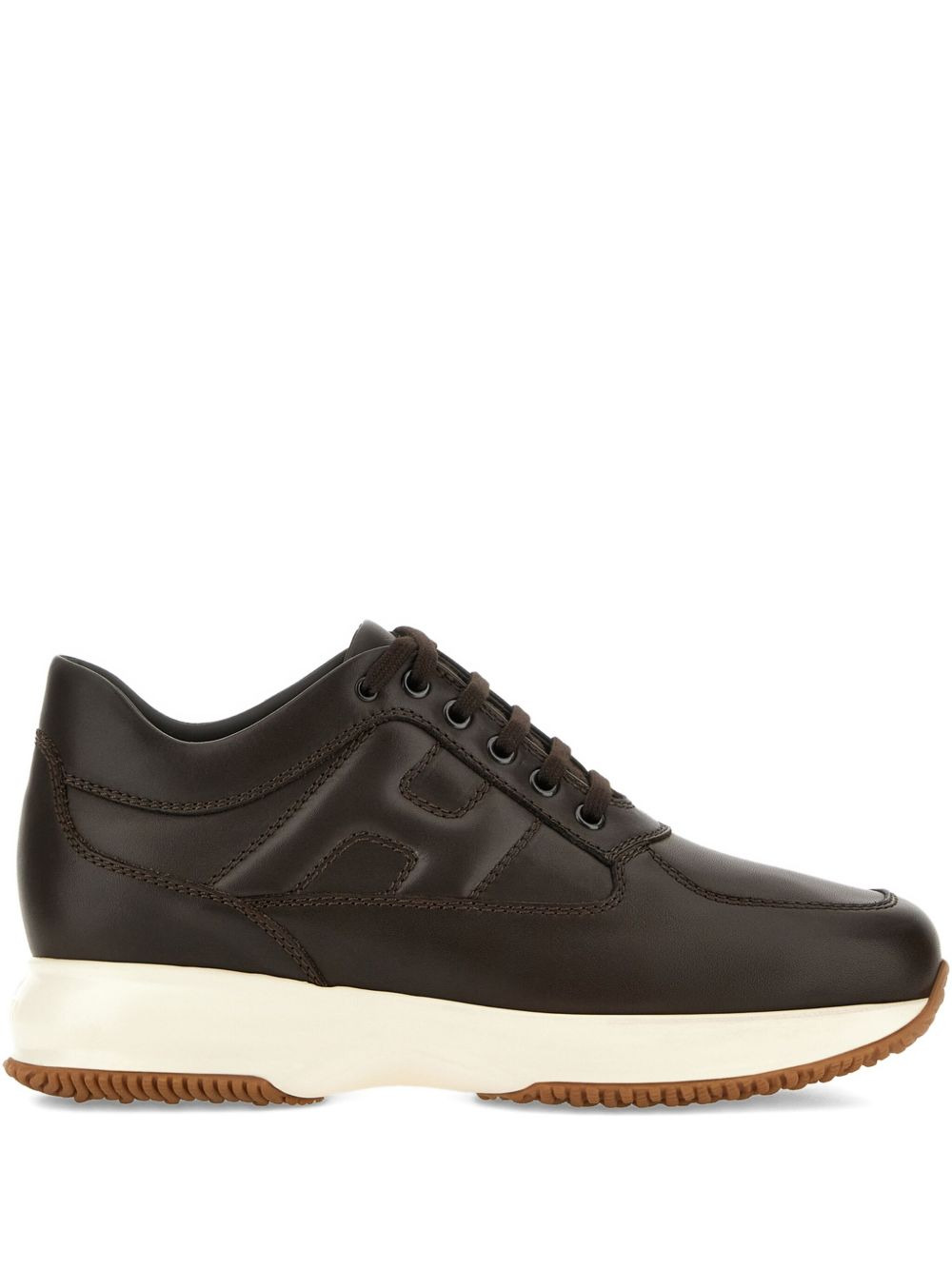 Interactive sneakers Highlights - Coffee brown - Front lace-up fastening - Rubber lug sole - Embossed logo to the side - Branded insole Made in Italy Composition Sole: Rubber 100% Lining: Calf Leather 100% Outer: CALFSKIN 100%
