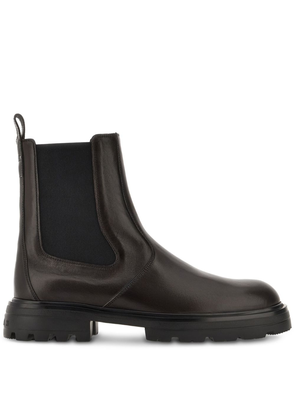 leather ankle boots Highlights - Brown - Slip-on style - Elasticated side panels - Pull-tab at the heel - Round toe Made in Italy Composition Outer: Calf Leather 100%, Polyester 72%, Rubber 28% Sole: Rubber 100% SIZE & FIT Measurement HEEL 1.96 in(5 cm)