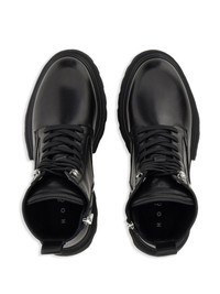 leather combat boots Highlights - Black - Calf leather - Polished effect - Front lace-up fastening - Side zip fastening - Ankle-length - Pull-tab at the heel - Round toe - Low block heel Made in Italy Composition Leather 100%