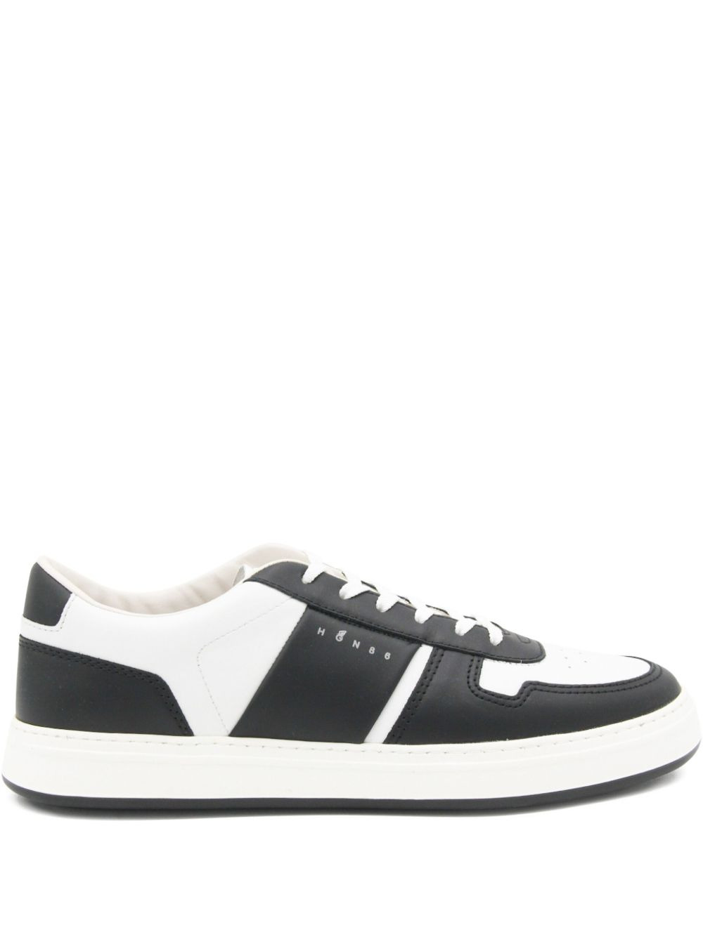 leather panelled sneakers Highlights - Black and white - Leather upper - Lace-up fastening - Panelled design - Flat sole - Logo detail Imported Composition Sole: Rubber 100% Lining: Leather 100% Outer: Leather 100%
