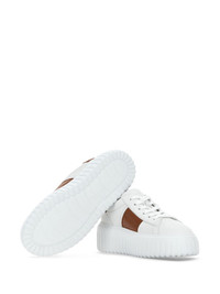logo sneakers Highlights - White/brown - Leather - Front lace-up fastening - Logo-embossed tongue - Branded insole - Round toe - Rubber sole Made in Italy Composition Leather 100% SIZE & FIT FittingInformation This piece fits large – take one size down Measurement HEEL 2.28 in(5.8 cm)