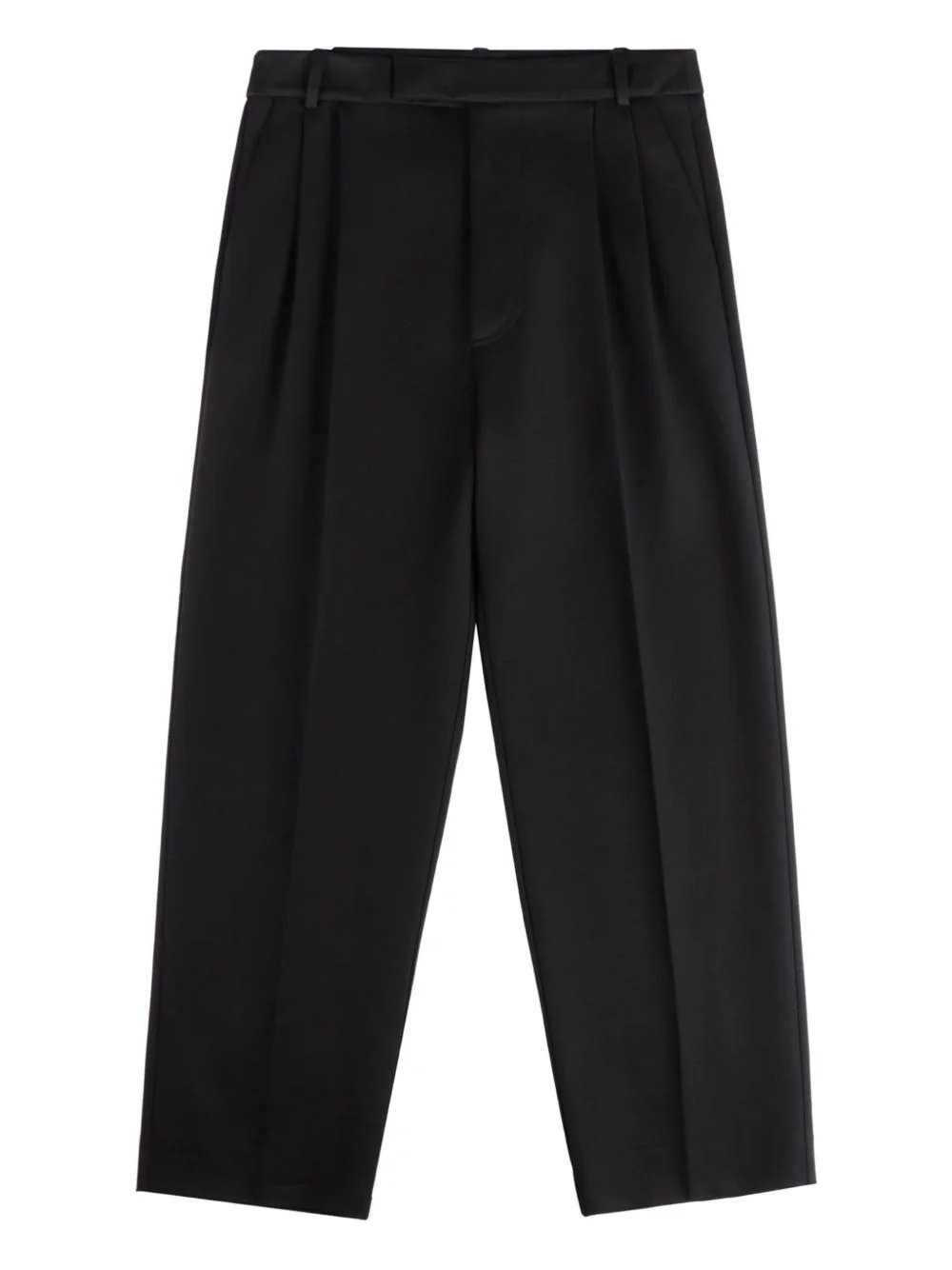 pleat-detail trousers Highlights - Black - Concealed front fastening - Two side slash pockets - Two rear jetted pockets - Belt loops Imported Composition Cotton 100% Washing instructions Read Manufacturer Guidelines