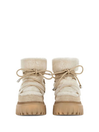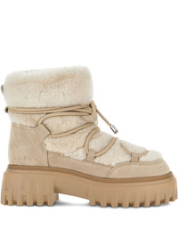 shearling-trim boots Highlights - Light beige - Front lace-up fastening - Chunky rubber lug sole - Pull-tab at the heel - Debossed logo to the side Made in Italy Composition Sole: Rubber 100% Outer: Sheep Skin/Shearling 70%, Calf Suede 30% Lining: Sheep Skin/Shearling 100%