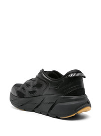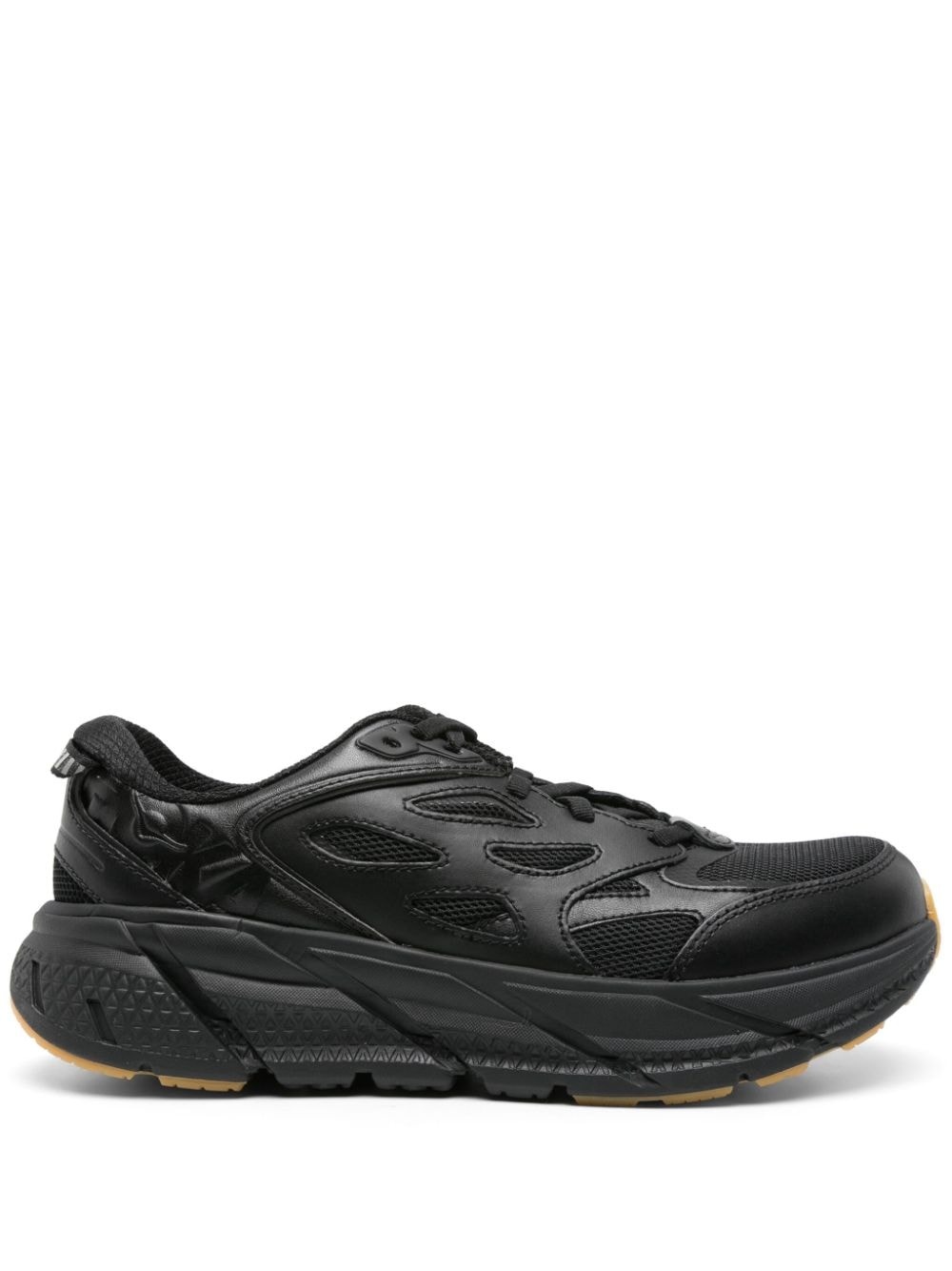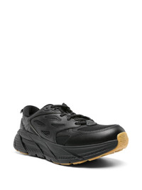Clifton L Athletics sneakers HOKA’s black Clifton L Athletics sneakers debuted alongside the brand’s apparel line as a complementary lifestyle shoe. The mesh and leather uppers boast the new lightweight SpeedFrame construction while the chunky soles have MetaRocker™ geometry to avoid landing flat-footed. Highlights - Black - Mesh upper - Leather trim - Panelled design - Pull-tab at the heel - Debossed logo to the side - Logo-debossed tongue - Round toe - Branded insole - Eva midsole - Chunky rubber sole - Front lace-up fastening Imported Composition Lining: Fabric 100% Outer: Polyurethane 100%, Calf Leather 100% Sole: Rubber 100% SIZE & FIT Measurement HEEL 1.77 in(4.5 cm) Sole height 1.18 in(3 cm)