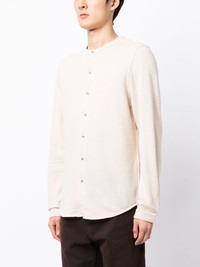 Henley-collar button-down shirt Highlights - Beige - Cotton blend - Henley neck - Front button fastening - Long sleeves - Buttoned cuffs - Curved hem Imported Composition Cotton 80%, Polyester 20% SIZE & FIT Model measurements Height 6 ft 2 in(1.87 m) Bust/Chest 34.25 in(87 cm) Hips 36.22 in(92 cm) Waist 29.52 in(75 cm) FittingInformation Designed to be unstructured, offering a loose fit throughout Made from a midweight non-stretch fabric, this piece offers minimal elasticity when worn This piece fits true to size – take your usual size Washing instructions Hand Wash