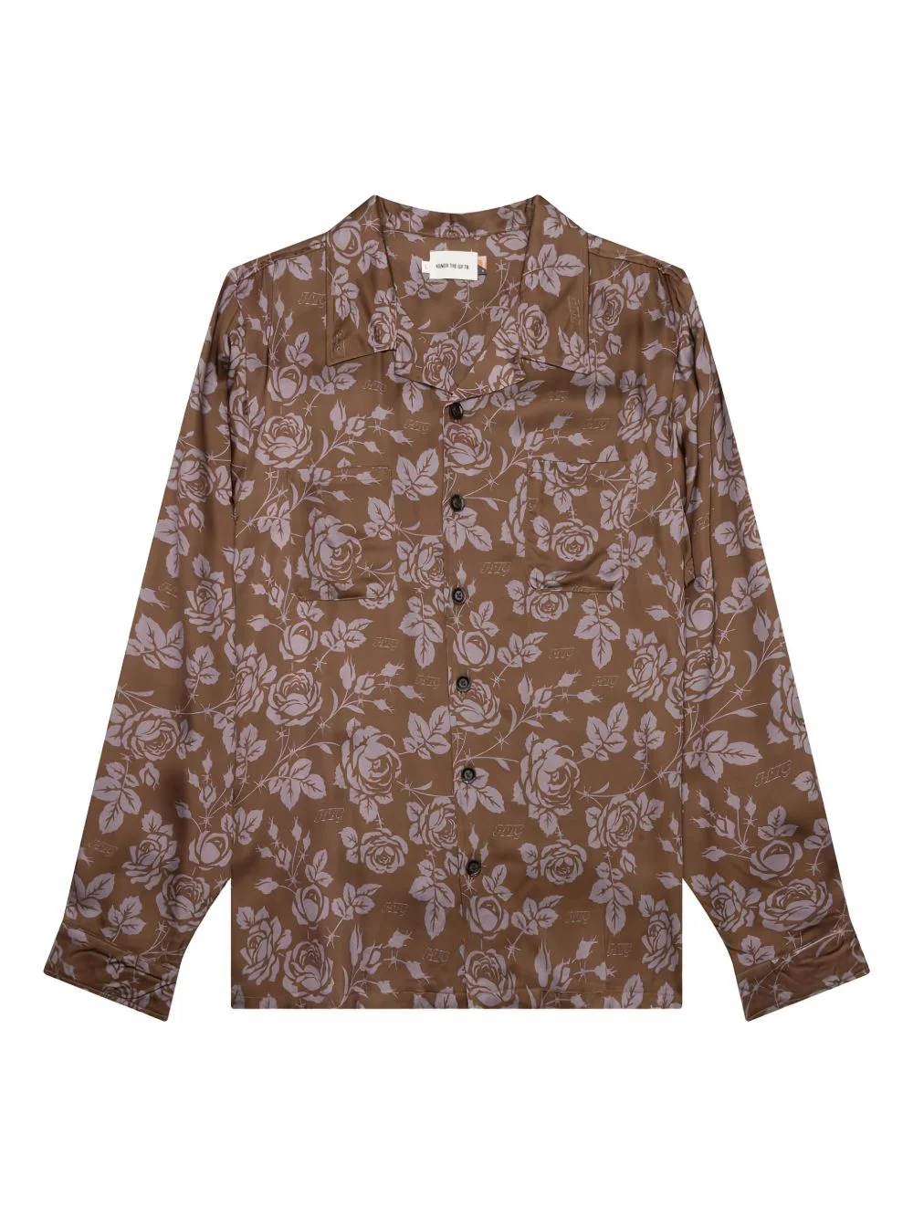 rose-print woven shirt Highlights - Brown - Rose print - Long sleeves - Revere collar - Front button fastening - Chest patch pockets Made in United States Composition Cotton 100% Washing instructions Read Manufacturer Guidelines