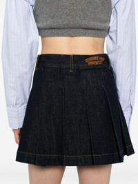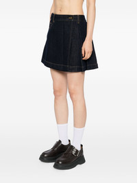 pleated denim skirt Highlights - Navy blue - Front button fastening - Belt loops Imported Composition Cotton 82%, Recycled Polyester 18% SIZE & FIT Model measurements Height 5 ft 10 in(1.77 m) Bust/Chest 30.31 in(77 cm) Hips 34.25 in(87 cm) Waist 25.19 in(64 cm) FittingInformation This mini-length skirt is intended to be worn just below the waist Sturdy and hard-wearing, this denim piece offers no stretch This piece fits large – take one size down Washing instructions Machine Wash