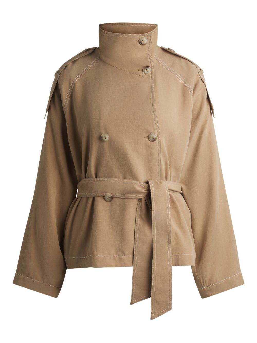 belted double-breasted jacket Highlights - Beige - Double-breasted - Button fastening - Belt - Shoulder epaulettes Imported Composition Outer: Lyocell 88%, Linen/Flax 12% Lining: Polyester 100% Washing instructions Dry Clean Only