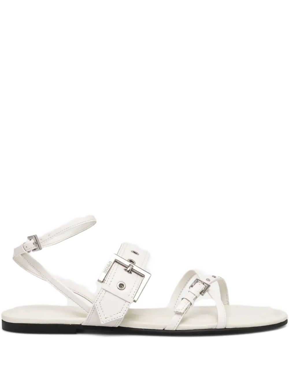 buckle-strap sandals Highlights - White - Two buckle-strap fastenings - Crossover strap detail - Almond open toe - Flat rubber sole Imported Composition Lining: Sheepskin 100% Outer: Sheepskin 100% Sole: Rubber 100%