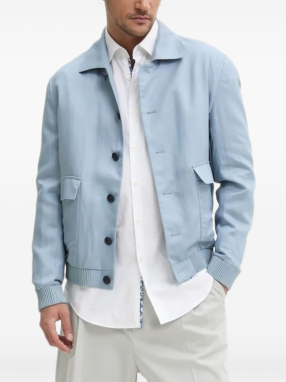 button-fastening jacket Highlights - Light blue - Ribbed cuffs - Front flap pockets - Front button closure - Collared neckline - Elasticated hemline Imported Composition Lyocell 67%, Hemp 33% Washing instructions Read Manufacturer Guidelines