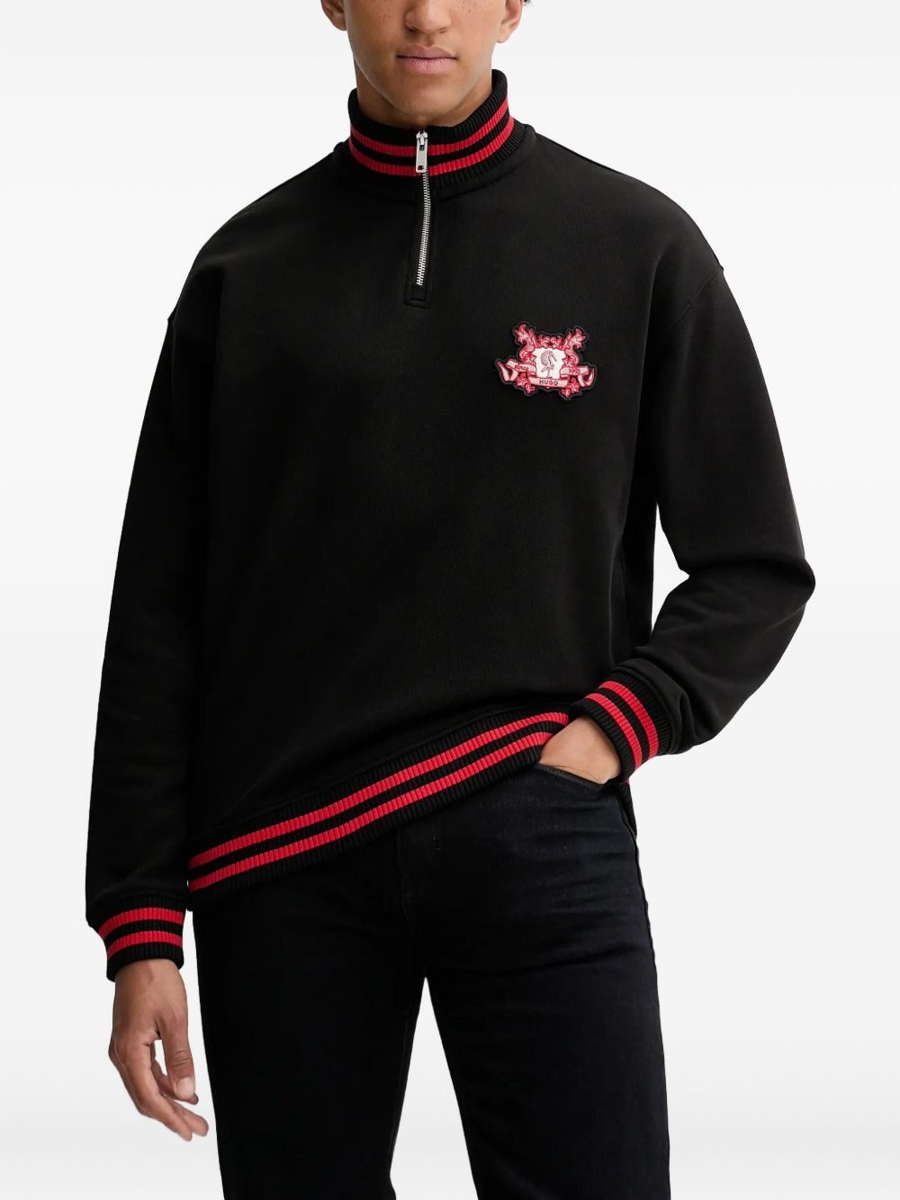 crest-embroidered half-zip sweatshirt Highlights Imported Composition Cotton 100%