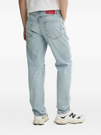 distressed five-pocket jeans Highlights - Light blue - Distressed finish - Red logo-patch - Five-pocket design - Button fastening Imported Composition Outer: Cotton 100% Lining: Cotton 100%