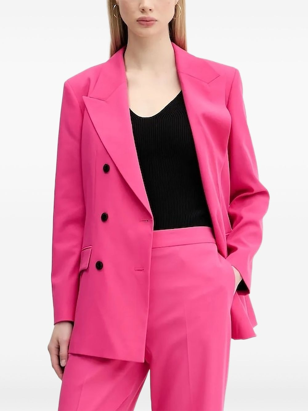 double-breasted blazer Highlights - Fuchsia pink - Double-breasted fastening - Peak lapels - Flap pockets - Long sleeves Imported Composition Polyester 67%, Viscose 24%, Elastane 9% Washing instructions Read Manufacturer Guidelines