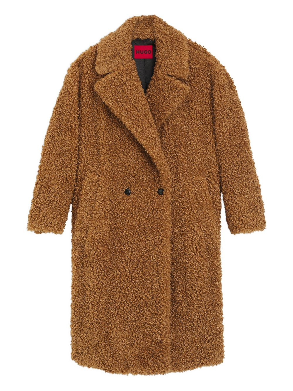 double-breasted coat Highlights - Brown - Textured finish - Double breasted - Lapel collar - Button fastening - Long sleeves Imported Composition Outer: Polyester 100% Lining: Polyester 100% Washing instructions Read Manufacturer Guidelines