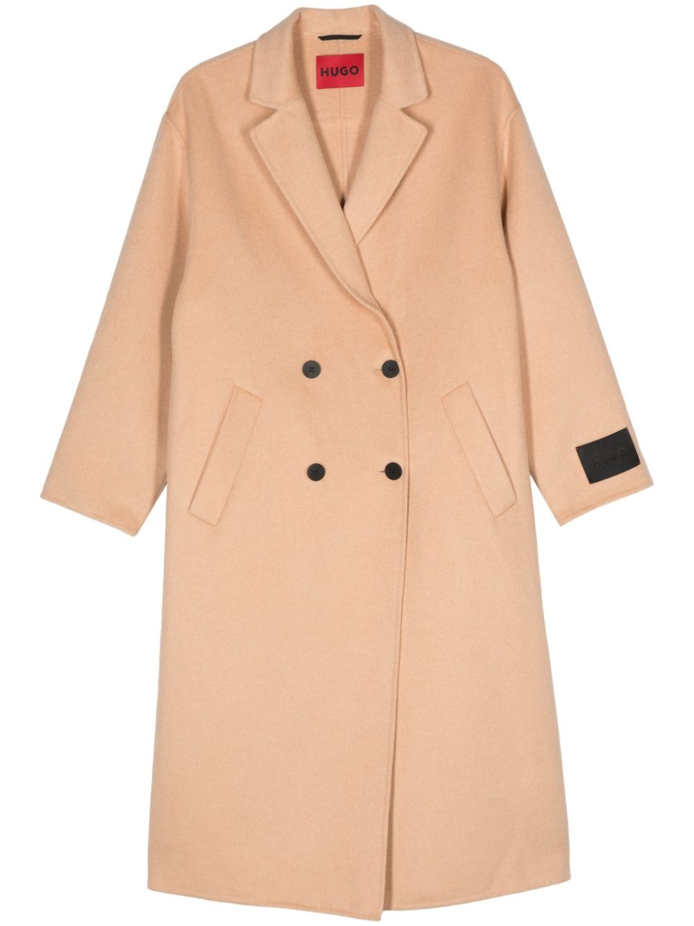 double-breasted long coat Highlights - Sand beige - Brushed effect - Double-breasted button fastening - Long length - Notched lapels - Two front welt pockets - Drop shoulder - Long sleeves - Logo tag - Central rear vent - Unlined Imported Composition Outer: Polyester 80%, Wool 20% Lining: Polyester 100%