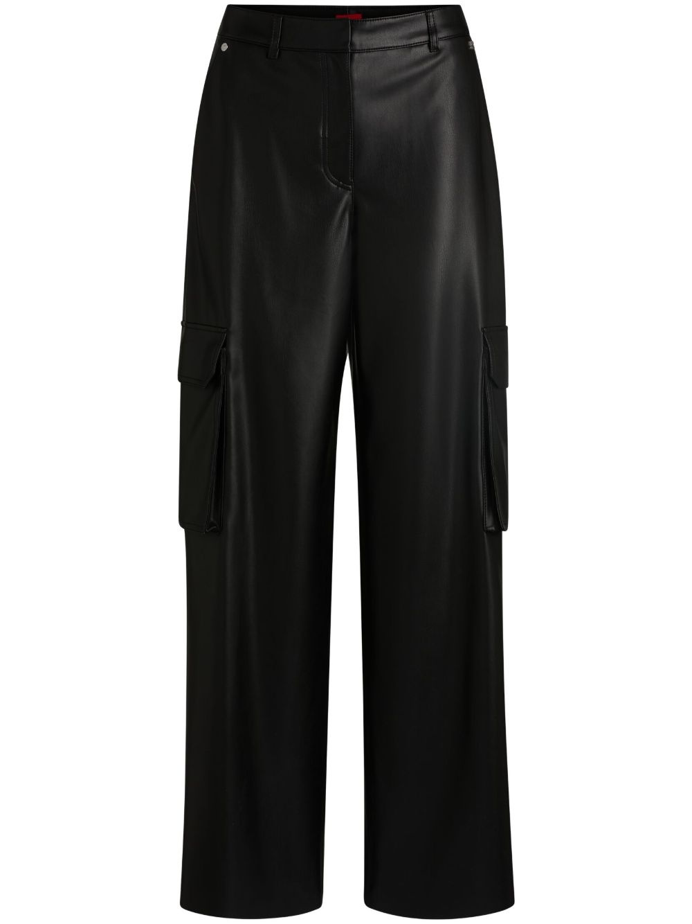 faux-leather cargo pants Highlights - Black - Concealed front button, hook and zip fastening - Two side inset pockets - Two side cargo pockets - Two rear patch pockets Imported Composition Lining: Polyester 100% Outer: Polyester 100% Washing instructions Machine Wash