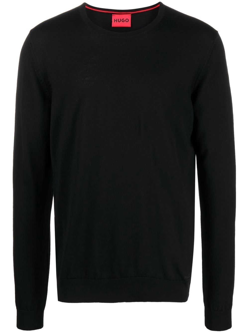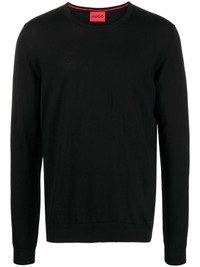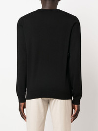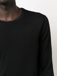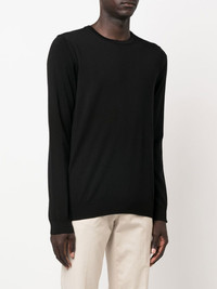 fine-knit round-neck jumper jet black virgin wool fine knit ribbed detailing round neck long sleeves straight hem Imported Composition Virgin Wool 100% SIZE & FIT Model measurements Height 6 ft 2 in(1.87 m) Bust/Chest 36.41 in(92.5 cm) Hips 37 in(94 cm) Waist 29.52 in(75 cm) FittingInformation This piece fits true to size. We recommend you get your regular size Cut for a relaxed fit Made with a mid-weight fabric Washing instructions Machine Wash