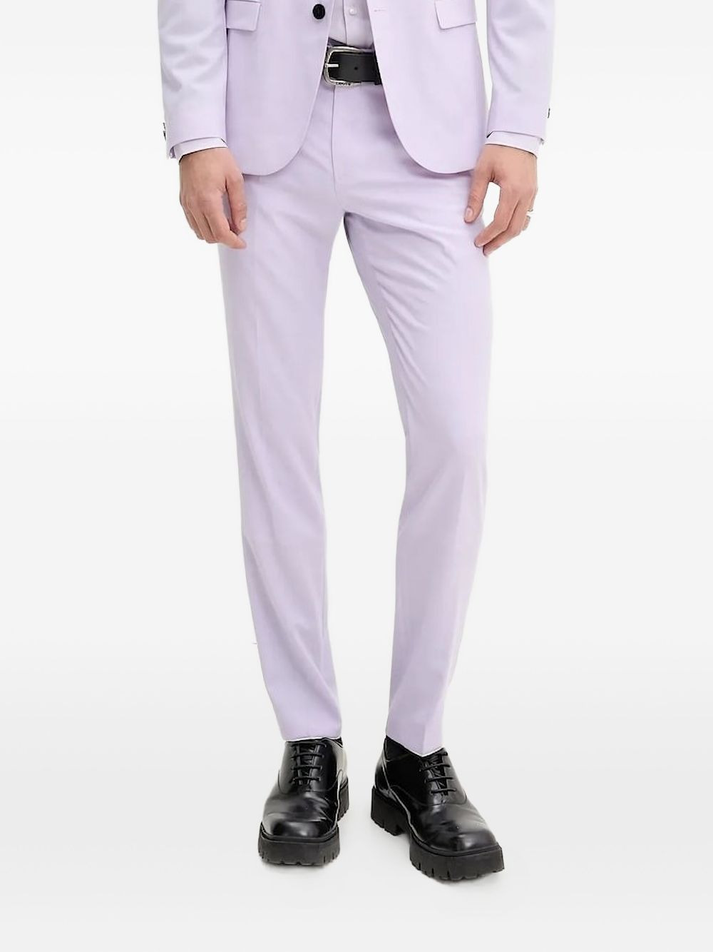 flat-front tailored trousers Highlights - Lilac - Flat front - Back welt-pockets - Belt loops Imported Composition Polyester 54%, Virgin Wool 44%, Elastane 2% Washing instructions Read Manufacturer Guidelines
