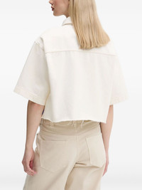 CROPPED ECRU-DENIM BLOUSE WITH RAW HEM