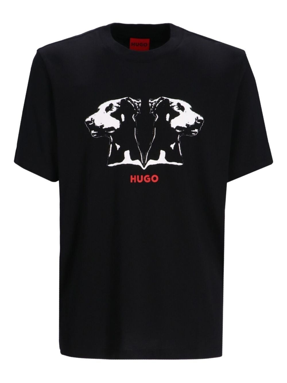 graphic-print T-shirt Highlights - Black - Contrasting dog graphic - Crew neck - Short sleeves - Logo lettering in red Imported Composition Cotton 100% Washing instructions Read Manufacturer Guidelines