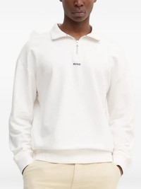 half-zip high-neck sweatshirt Highlights - White - Half zip fastening - High neck - Long sleeves - Applique logo Imported Composition Cotton 100% Washing instructions Read Manufacturer Guidelines