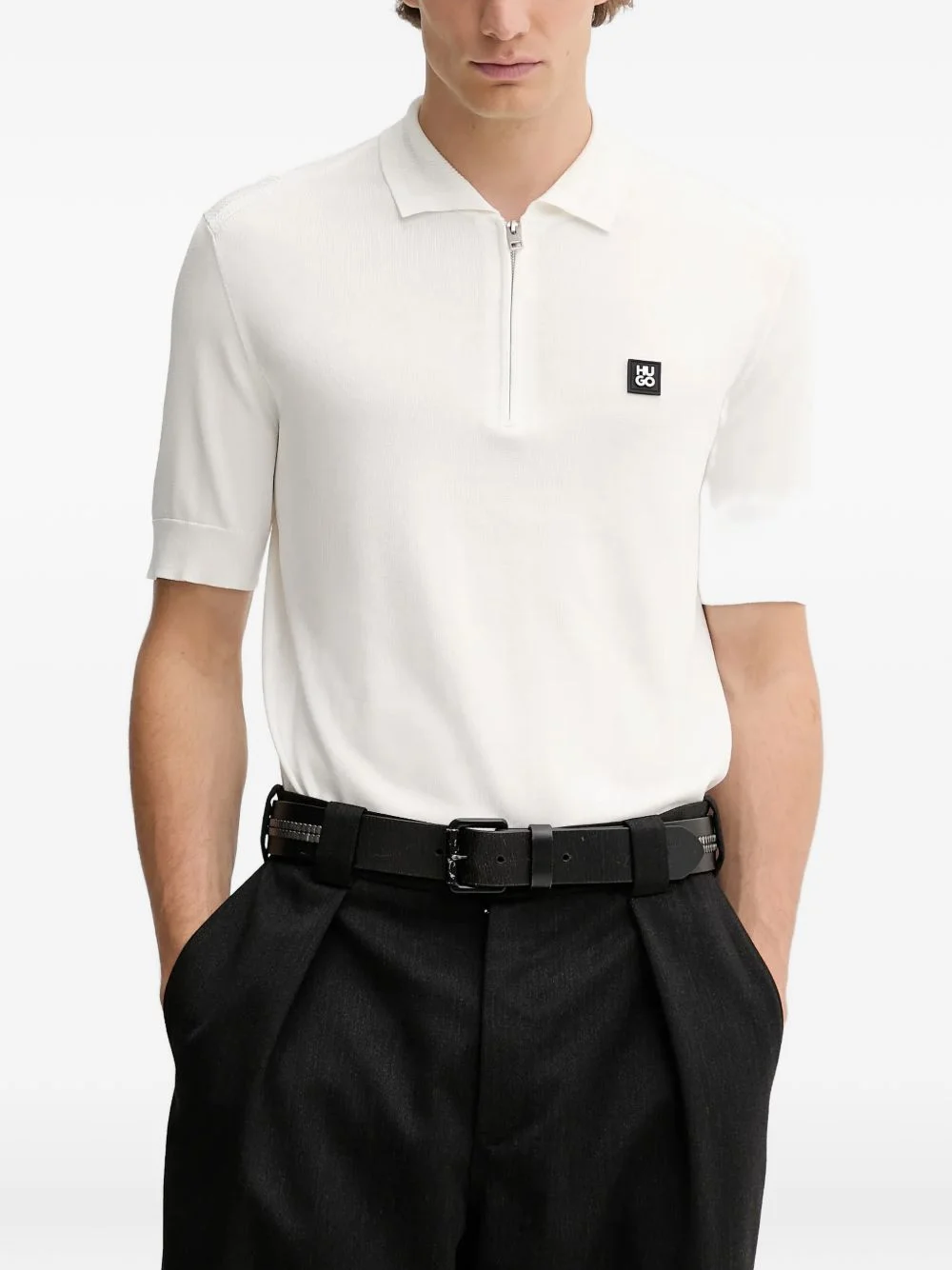 half-zip logo-patch polo shirt Highlights - White - Logo patch - Zip detail - Short sleeves - Polo collar - Ribbed hem Imported Composition Fabric 100% Washing instructions Read Manufacturer Guidelines