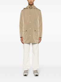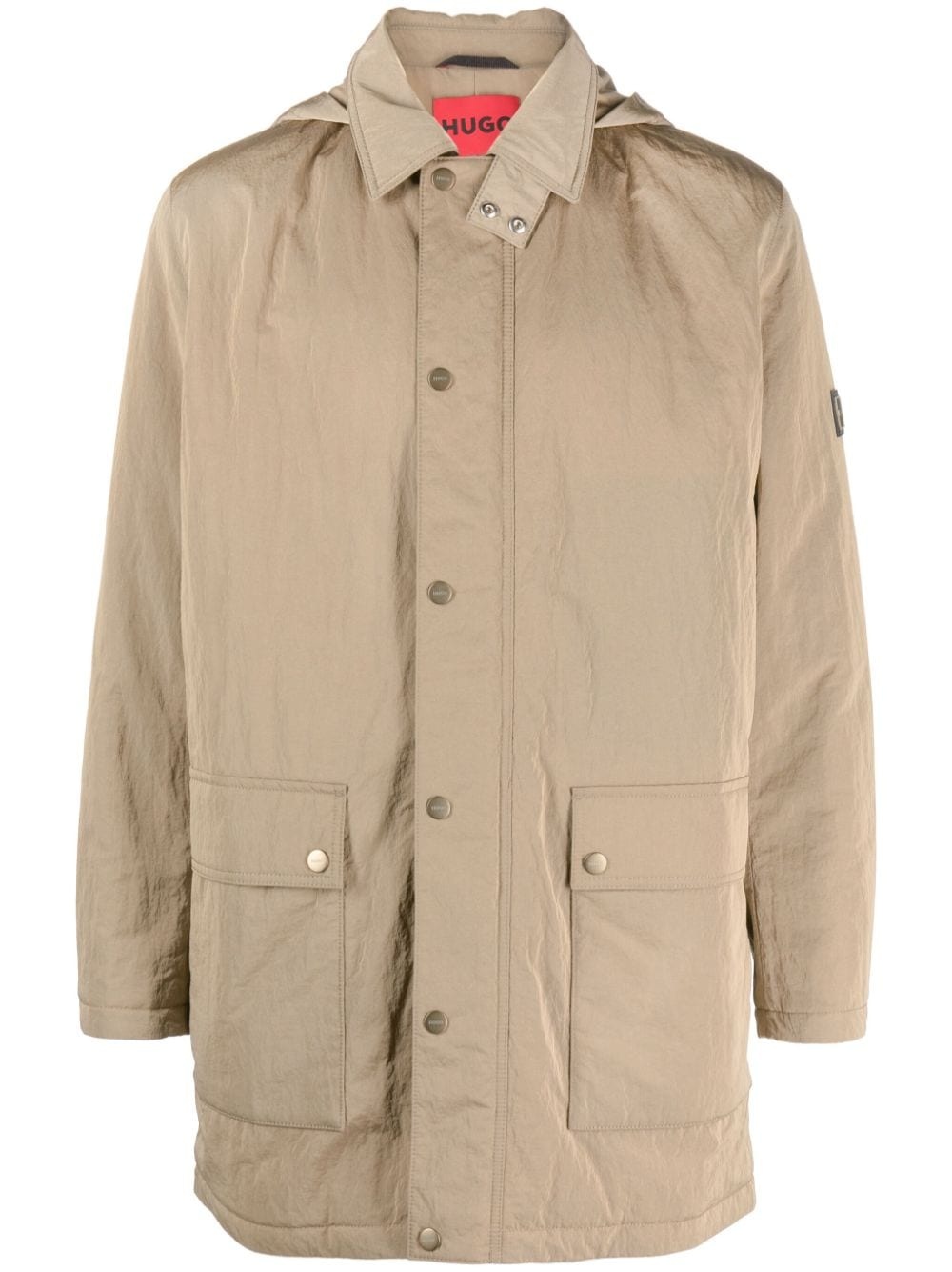 hooded crinkled-finish raincoat Highlights - Caramel brown - Crinkled finish - Water-repellent - Logo patch at the sleeve - Classic collar - Detachable hood - Front press-stud fastening - Concealed front zip fastening - Branded zip puller - Long sleeves - Straight hem - Two front flap pockets - Two side slit pockets - Full lining - Locker loop - Internal zip-fastening pocket Imported Composition Outer: Polyamide 100% Lining: Polyester 68%, Cotton 32% SIZE & FIT Model measurements Height 6 ft 2 in(1.87 m) Bust/Chest 38.18 in(97 cm) Hips 36.61 in(93 cm) Waist 29.13 in(74 cm) FittingInformation Designed to be unstructured, offering a loose fit throughout Made from a midweight non-stretch fabric This piece fits true to size – take your usual size