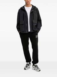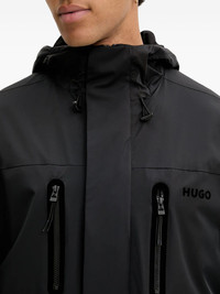 hooded pocket jacket Highlights - Black - Logo lettering - Hooded neckline - Concealed zip fastening - Zip pockets - Flap pockets - Adjustable drawstring hood Imported Composition Lining: Polyester 100% Outer: Recycled Polyamide 90%, Elastane 10% Washing instructions Read Manufacturer Guidelines