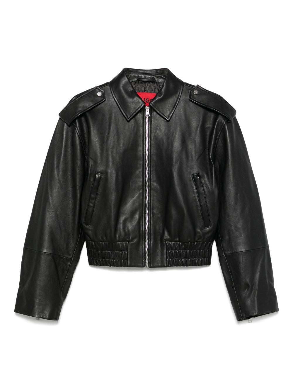 leather bomber jacket Highlights - Black Imported Composition Lining: Recycled Polyester 100% Outer: Lamb Skin 100%