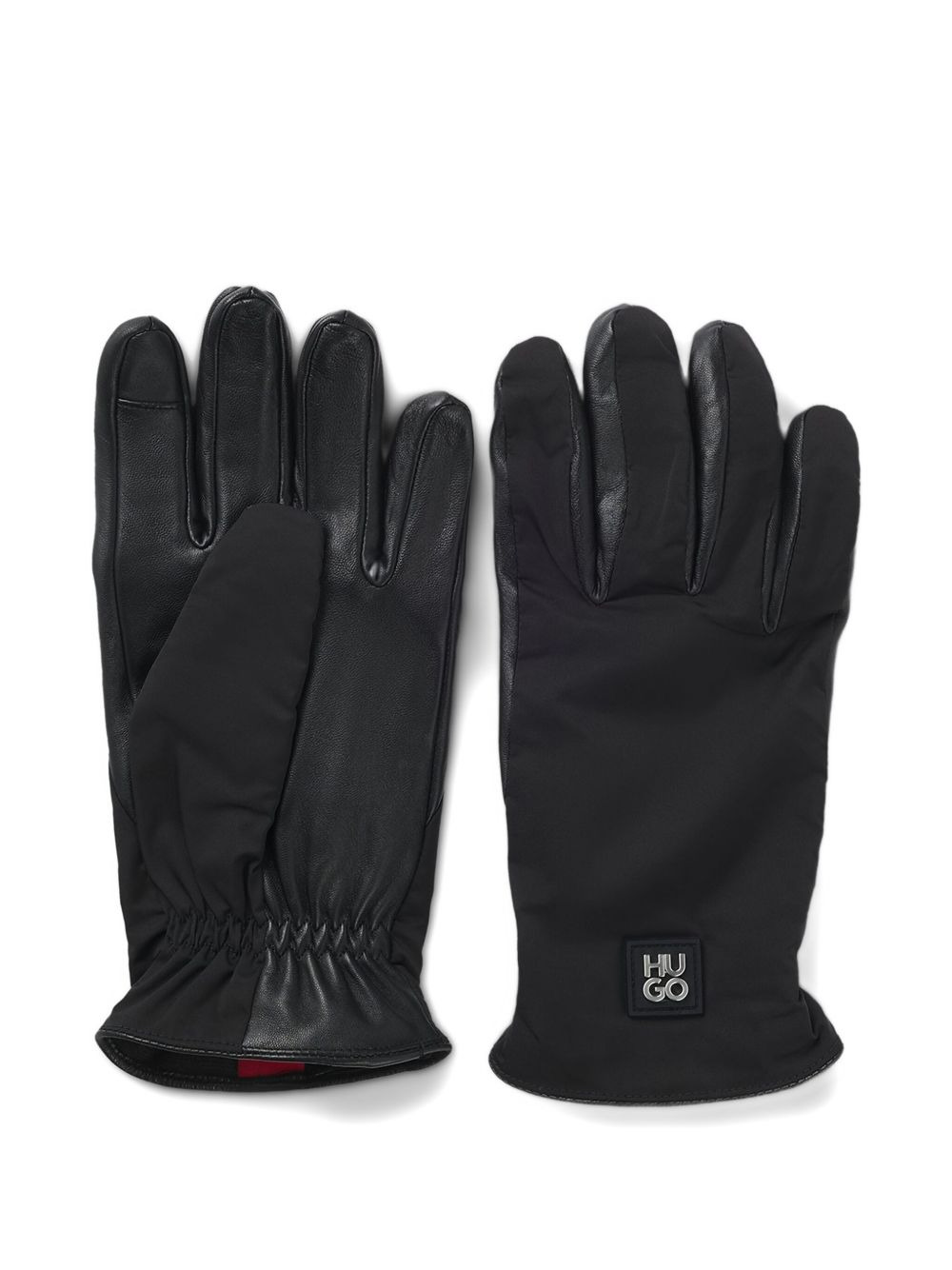 leather panelled gloves Highlights - Black - Leather palms - Gathered cuffs - Logo patch - Panelled design Imported Composition Polyester 100%, Recycled Polyester 100%, Calf Leather 100%