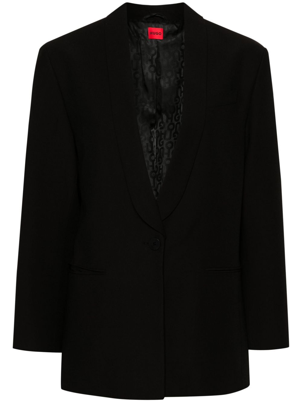 logo-applique blazer Highlights - Black - Stretch-design - Applique logo - Shawl lapels - Front button fastening - Shoulder pads - Long sleeves - Buttoned cuffs - Chest welt pocket - Two front jetted pockets - Italian rear vents - Full lining Imported Composition Outer: Viscose 79%, Polyester 18%, Spandex/Elastane 3% Lining: Polyester 50%, Viscose 50% SIZE & FIT Model measurements Height 5 ft 10 in(1.78 m) Bust/Chest 31.49 in(80 cm) Hips 37 in(94 cm) Waist 23.62 in(60 cm) FittingInformation Designed for a relaxed fit, this piece allows for comfort and movement when worn The internal shoulder pads offer a structured shape Made from a midweight fabric This piece fits true to size – take your usual size Washing instructions Dry Clean Only