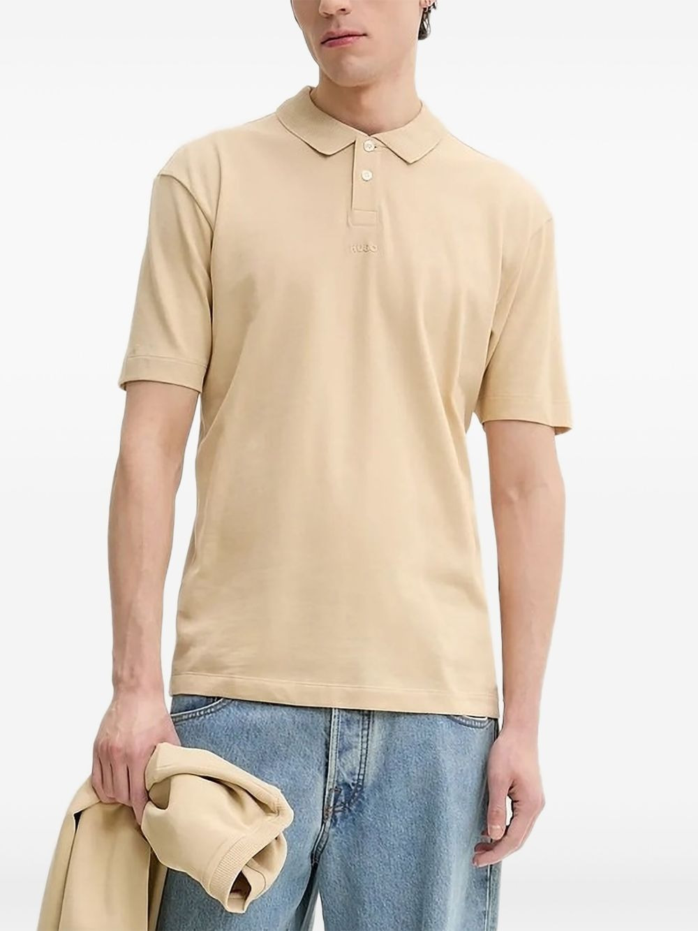 logo-detail polo shirt Highlights - Beige - Short sleeves - Button placket - Logo detail - Ribbed collar Imported Composition Cotton 100% Washing instructions Read Manufacturer Guidelines