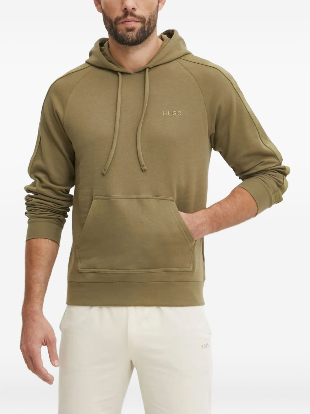 logo-embroidered hoodie Highlights - Olive green - Logo detail - Tape detail - Drawstring hood - Long sleeves - Front pouch pocket Imported Composition Fabric 100% Washing instructions Read Manufacturer Guidelines