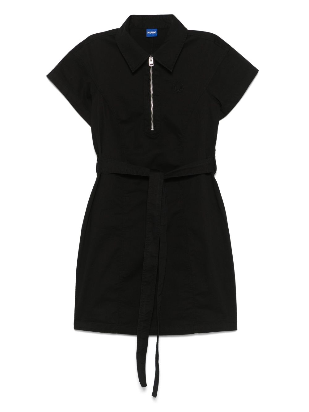 logo-embroidered mini dress Highlights - Black - Short front zip fastening - Belted waist - Classic collar - Straight hem Imported Composition Cotton 98%, Elastane 2% SIZE & FIT Model measurements Height 5 ft 9 in(1.76 m) Bust/Chest 31.88 in(81 cm) Hips 35.43 in(90 cm) Waist 24.8 in(63 cm) FittingInformation Designed for a slim fit that sits just away from the body offering a close yet comfortable fit The adjustable tie waist gives a more adaptable and personalised fit Made from a midweight stretch fabric, this piece offers elasticity and flexibility when worn