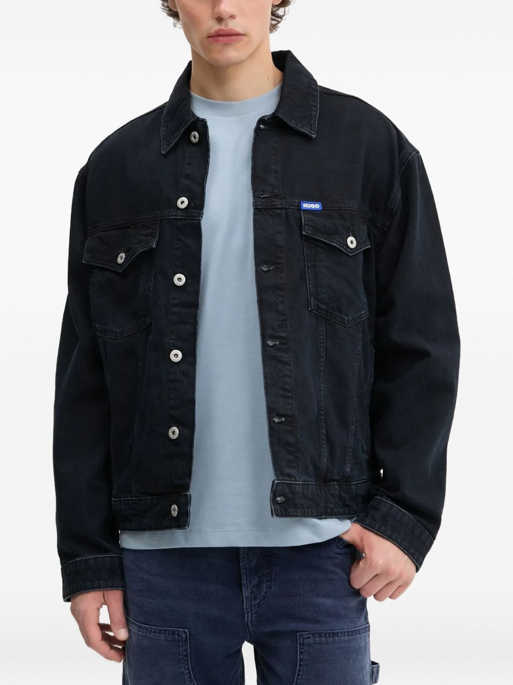 logo-plaque denim jacket Highlights - Black - Button fastening - Chest pockets - Back logo patch - Long sleeves - Classic collar Imported Composition Cotton 100% Washing instructions Read Manufacturer Guidelines