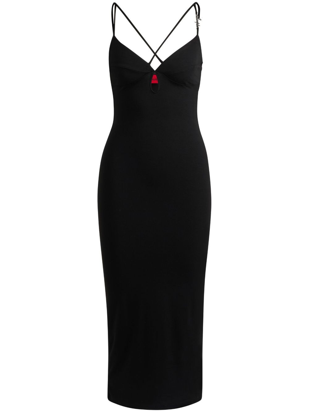 logo-plaque jersey midi dress Highlights - Black - Stretch-jersey - Silver-tone logo plaque - Thin straps - Adjustable spaghetti straps - V-neck - Straight hem - Below-knee length Imported Composition Viscose 95%, Elastane 5% Washing instructions Read Manufacturer Guidelines