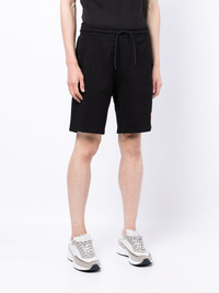 logo-print shorts black cotton jersey knit logo print at the leg drawstring fastening waist Imported Composition Outer: Cotton 100% SIZE & FIT Model measurements Height 6 ft 2 in(1.87 m) Bust/Chest 34.25 in(87 cm) Hips 36.22 in(92 cm) Waist 29.52 in(75 cm) FittingInformation This piece fits true to size. We recommend you get your regular size Designed for a slim fit at the waist and loose over the leg Made with a mid-weight fabric Measurement FRONT RISE 12.59 in(32 cm) LENGTH 19.29 in(49 cm) WAIST 31.49 in(80 cm) BACK RISE 16.92 in(43 cm) HIPS 40.94 in(104 cm) Washing instructions Machine Wash